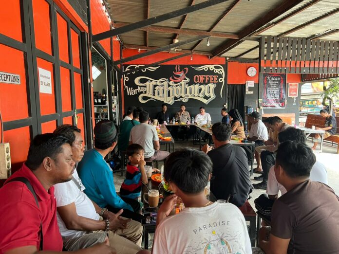 Bertempat di warung kopi Labolong di Jalan Sengkawit dalam giat Jumat Curhat hadir Dirbinmas Polda Kaltara, Kombes Pol Eri Dwi Hariyanto, S.I.K., yang menyapa secara langsung anggota komunitas yang ada di Tanjung Selor, serta hadir pula tokoh masyarakat.