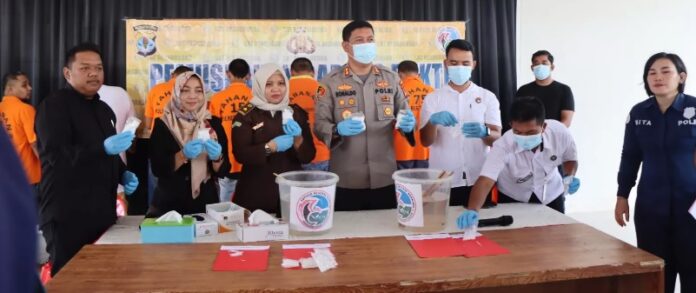 KAYANTARA.COM, TARAKAN – Polres Tarakan kembali memusnahkan barang bukti pengungkapan narkotika jenis sabu. Kali ini ssebanyak 526,99 gram yang merupakan total keseluruhan dari empat kasus yang diungkap selama Juli hingga Agustus 2023.