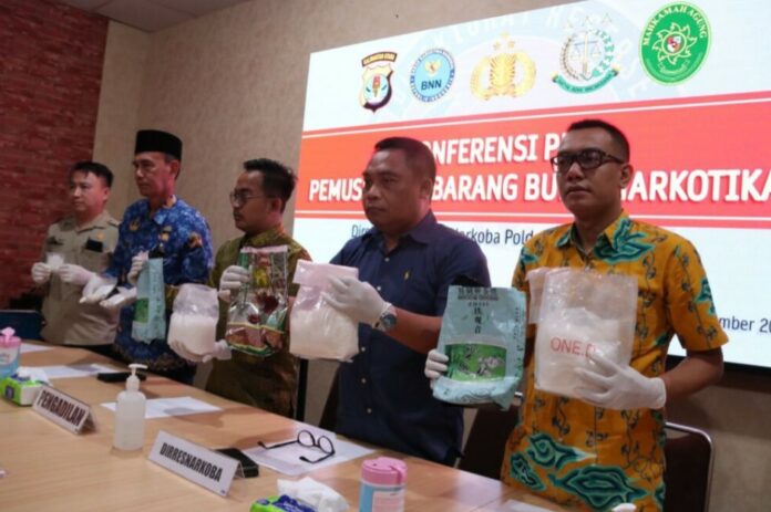 KAYANTARA.COM, TANJUNG SELOR – Dirnarkoba Polda Kaltara Kombes Pol Agus Yulianto, S.Sos., S.I.K., M.Si. mempimpin pemusnahan barang bukti di ruangan Ditresnarkoba Polda Kaltara, Jumat (17/11/2023)