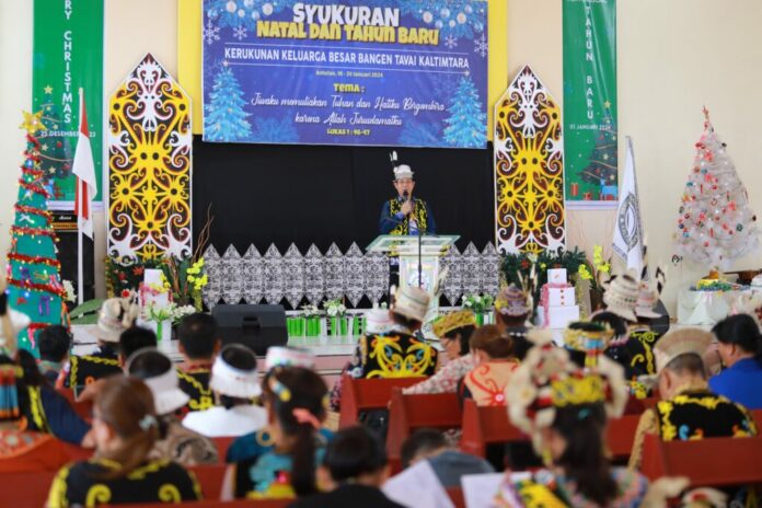 KAYANTARA.COM, TANJUNG SELOR – Wakil Gubernur (Wagub) Kalimantan Utara (Kaltara), Dr. Yansen TP, M.Si., menghadiri perayaan Syukuran Natal dan Tahun Baru Kerukunan Keluarga Besar Bangen Tavai (KKBBT) Kaltimtara di Gereja Kemah Injil Indonesia di Desa Antutan, Kecamatan Tanjung Palas, Kabupaten Bulungan, Jumat (19/1).