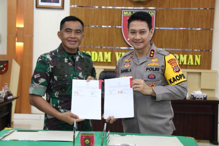KAYANTARA.COM, BALIKPAPAN – Kepala Kepolisian Daerah Kalimantan Utara Irjen Pol. Daniel Adityajaya, S.H, S.I.K, M.Si Melaksanakan Penandatanganan Perjanjian Kerja Sama antara Polda Kaltara dengan Kodam VI/Mulawarman bertempat di Ruang Yudha Makodam VI/Mulawarman Kota Balikpapan, Kalimantan Timur, Senin (05/02/2024).
