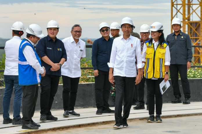 Turut mendampingi Presiden Jokowi dalam peninjauan tersebut yaitu Menteri Badan Usaha Milik Negara (BUMN) Erick Thohir, Menteri Investasi/Kepala Badan Koordinasi Penanaman Modal (BKPM) Bahlil Lahadalia, Menteri Perdagangan (Mendag) Zulkifli Hasan, Menteri PUPR Basuki Hadimuljono, dan Menteri Agraria dan Tata Ruang (ATR)/Kepala Badan Pertanahan Nasional (BPN) Agus Harimurti Yudhoyono.