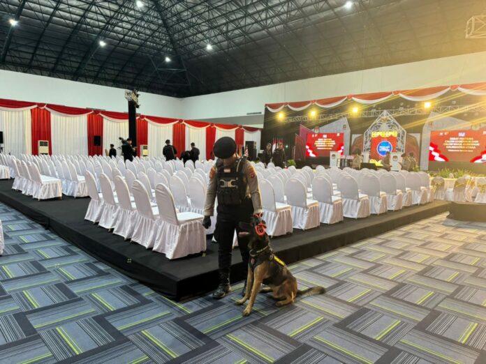 Upaya pengamanan ini tidak hanya sekadar penjagaan rutin, namun juga menyertakan keahlian khusus dari Belgian Malinois, anjing pelacak yang kompeten dalam mendeteksi bahan peledak. Sebanyak satu ekor anjing pelacak handak bersama dengan dua pawangnya telah melakukan penyisiran menyeluruh baik di dalam maupun di luar gedung. Tidak hanya area utama, tetapi juga termasuk tempat parkir kendaraan untuk memastikan bahwa seluruh lokasi mulai dari ring 1 hingga ring 3 terbebas dari ancaman bahan peledak.