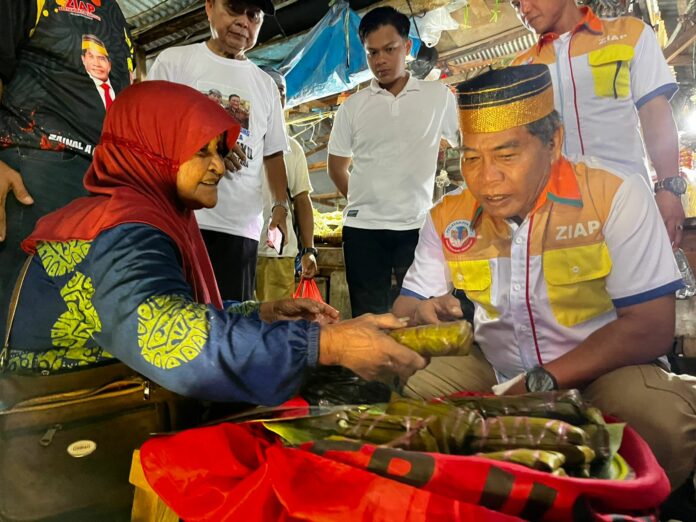 KAYANTARA.COM, NUNUKAN – Blusukan ke Pasar Inhutani Kabupaten Nunukan, Calon Gubernur (Cagub) Kalimantan Utara (Kaltara) nomor urut 2, Zainal Arifin Paliwang turut berinteraksi dengan para pedagang terkait harga beberapa komoditas.