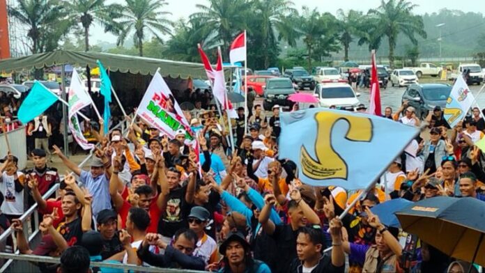 KAYANTARA.COM, TANJUNG SELOR-Meski diguyur hujan deras, puluhan ribu relawan, partisipan antusias mengikuti Kampanye Akbar pasang Zainal-Ingkong Ala Pilihanku (ZIAP) yang berlangsung di Lapangan Agathis, Tanjung Selor, Bulungan pada Ahad, 17 November 2024.