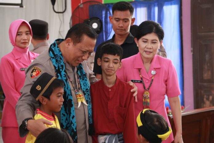KAYANTARA.COM, MALINAU – Kapolda Kalimantan Utara, Irjen Pol Hary Sudwijanto, S.I.K., M.Si., bersama Ketua Bhayangkari Daerah Kalimantan Utara, Ibu Dion Hary Sudwijanto, menyempatkan hadir mengunjungi anak-anak Sekolah Luar Biasa (SLB) Negeri Malinau di sela-sela kunjungan kerja (kunker) mereka. Kunjungan ini menjadi momen berbagi kasih, kepedulian, dan kecintaan kepada anak-anak berkebutuhan khusus melalui acara makan bersama. Selasa (07/01/2025).