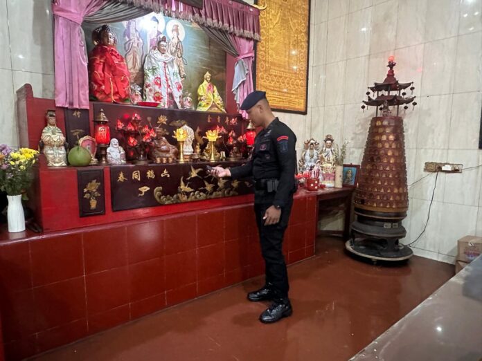 KAYANTARA.COM, TARAKAN – Sebanyak 10 Personel Detasemen Gegana Satbrimob Polda Kaltara dengan dipimpin Panit Jibom Detasemen Gegana Bripka Mardianus Rembon pada hari Rabu, 29 Januari 2025, melaksanakan Sterilisasi dalam rangka Ibadah Tahun Baru Imlek 2025 di Klenteng Kong Hu Cu “TOA PEK KONG” Kota Tarakan.