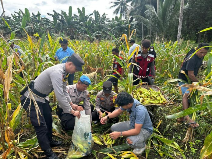 KAYANTARA.COM, NUNUKAN – Dalam rangka mendukung program ketahanan pangan Indonesia melalui Program Asta Cita untuk Swasembada Pangan, Polsek sebatik barat Polres Nunukan Melaksanakan Panen Jagung Pertama di kebun Ketahanan pangan. Rabu (05/02/2025)