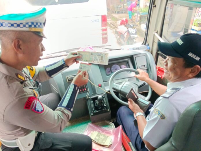 Bertempat di Terminal Damri Jl. Sengkawit Pasar Induk Tanjung Selor, Personel Satgas Preemtif Ops Keselamatan Kayan 2025 melaksanakan kegiatan ramp check kenderaan Bus Damri. Jumat (14/02/2025).