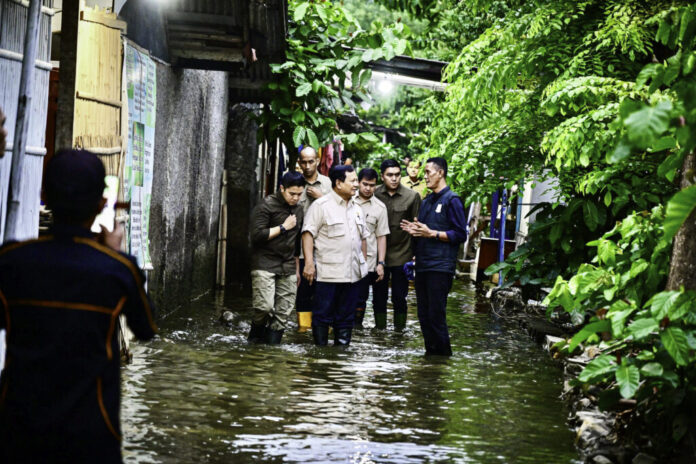 Presiden Prabowo Subianto mengunjungi masyarakat terdampak banjir di Babelan, Kabupaten Bekasi, Jawa Barat, pada Sabtu, 8 Maret 2025. (Foto: BPMI Setpres)