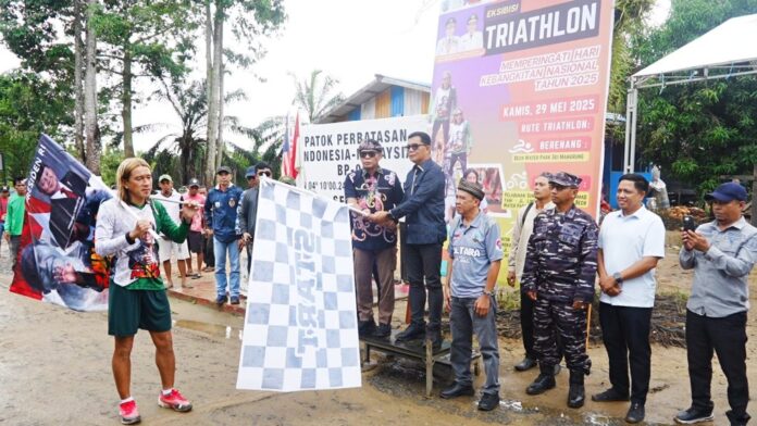 KAYANTARA.COM, NUNUKAN – Gubernur Kalimantan Utara (Kaltara) Dr. H. Zainal A. Paliwang, S.H., M.Hum., membuka sekaligus melepas saudara Iman, yang dikenal dengan Sapaan (Messi), dalam Eksibisi Triathlon Provinsi Kaltara tahun 2025, berlangsung di Patok dua perbatasan Indonesia – Malaysia, Sebatik Tengah, Kabupaten Nunukan, Kamis (28/5).