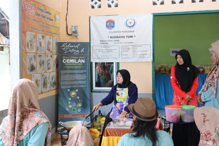 Seperti melatih cara membuat cemilan keripik dari sayur pare, keripik pepaya, dan keripik pisang pedas manis yang dipusatkan di Sentra Cemilan Kampung Empat, Kecamatan Tarakan Timur, yang merupakan binaan Kementerian Perikanan Republik Indonesia.