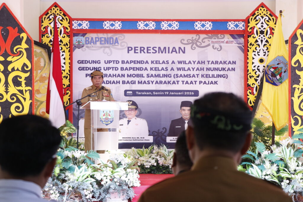 KAYANTARA.COM, TARAKAN – Gubernur Kalimantan Utara (Kaltara) Dr. H. Zainal A. Paliwang, S.H., M.Hum, meresmikan Gedung Kantor Unit Pelaksana Teknis Daerah (UPTD) Badan Pendapatan Daerah (Bapenda) Kaltara Kelas A Wilayah Tarakan dan Wilayah Nunukan, Senin (19/1) pagi.