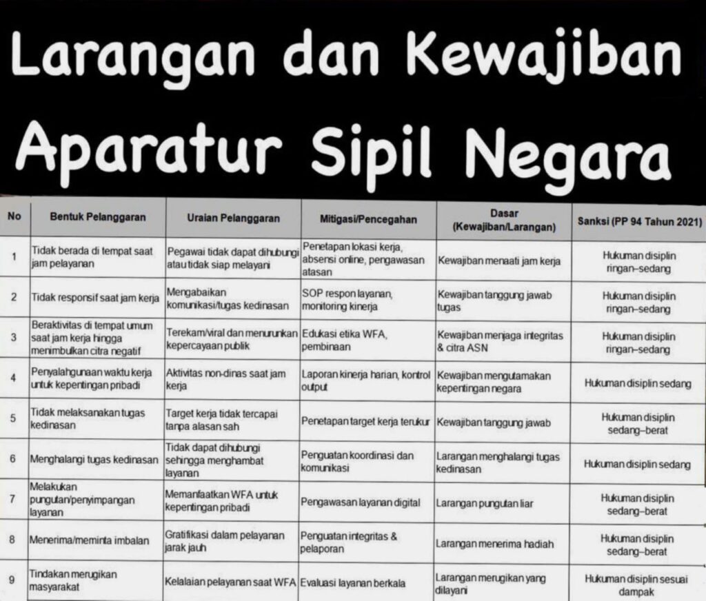 “Mereka dimanjakan dengan WFA, sehingga lupa bahwa ada kewajiban dan tanggungjawab untuk harus tetap memberikan layanan publik secara optimal,” tuturnya.