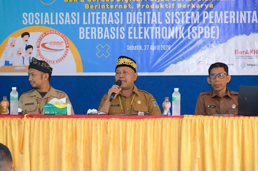 Kegiatan Sosialisasi Literasi Sistem Pemerintahan Berbasis Elektronik (SPBE) secara resmi dibuka oleh Kepala DKISP Kaltara, Dr. H. Iskandar, S.IP., M.Si., yang berlangsung di SMA Negeri 1 Sebatik, Senin (27/4).